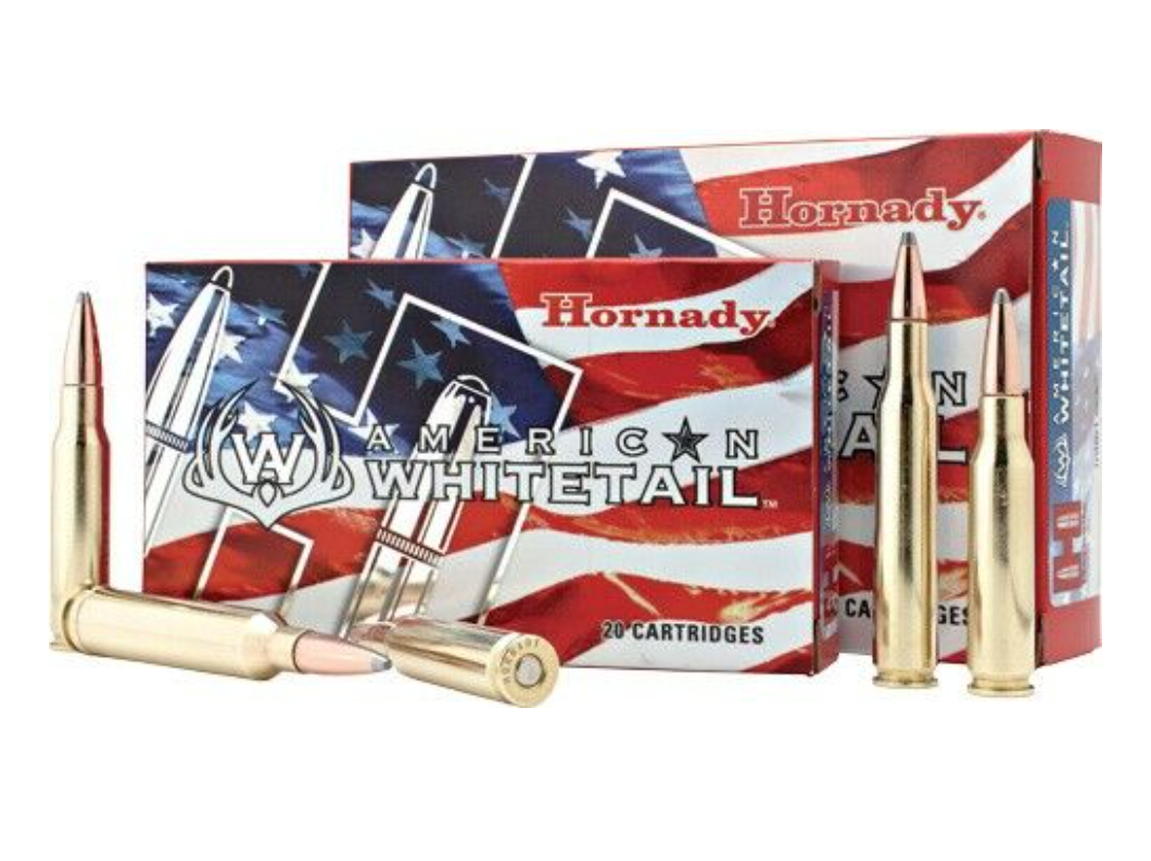 Hornady’s American Whitetail line is built around the InterLock bullet, a soft-point hunting projectile with a raised ring embedded in the jacket wall that mechanically locks the jacket to the lead core. This prevents core-jacket separation on impact, improving weight retention and allowing the bullet to transfer energy deeper into the target. The exposed lead tip initiates expansion reliably, while the tapered jacket controls how far it opens.