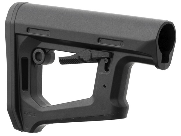 The Magpul DT-PR Carbine Stock introduces advanced dual tensioning technology to deliver greater control and stability for precision-focused AR platforms while retaining the functionality needed for on-the-move tactical shooting. Designed specifically for Mil-Spec carbine and A5 receiver extensions, the DT-PR features a new length-of-pull adjustment system with a single ambidextrous control lever that locks securely into place without requiring a secondary lock, enabling quick adjustments while maintaining precision rifle stability and control. This dual tension locking system improves ease of adjustment while securing LOP placement, limiting secondary movements, and enhancing overall durability.